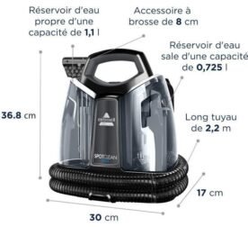 BISSELL Spot Clean Plus 3724N – Quitamanchas multisuperficie – Potencia de 330 W – Radio de acción de 5 m
