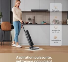 Aspiradora de varilla inalámbrica y fregona – ULTENIC AC Elite 3 en 1 – Húmedo y seco – 50 min – 1,15 L – Suelos duros y vinilo – Suciedad pegajosa