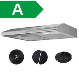 Campana extractora CIARRA de 60 cm, 580 m³/h, clasificación energética A+, 3 velocidades, recirculación o extracción, con 2 filtros activos, campana angular de acero inoxidable CD6765AS