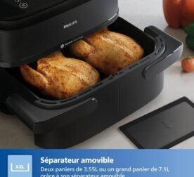 Freidora de aire Philips NA150/00 – Serie 1000 – Cesta flexible de 7 l – Divisor extraíble – 2400 W – Negra
