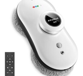 Robot limpiacristales – WOOPSO – AlfaBot X6 – Control remoto – 33x33x7 cm – Blanco – Potencia de succión 5 kg – Seguridad anticaída