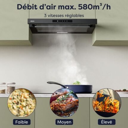 Campana extractora CIARRA de 60 cm A+ 580 m³/h Modo recirculación o extracción Incluye 2 filtros activos Campana negra CD6909AB