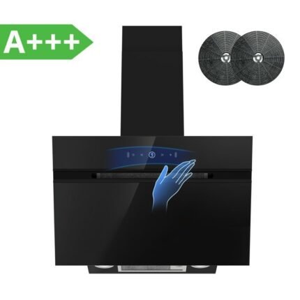 Campana extractora angular Comfee de 60 cm – 800 m³/h – Clase energética A++ – Controles gestuales – 4 velocidades – 2 filtros de carbón – Cristal negro
