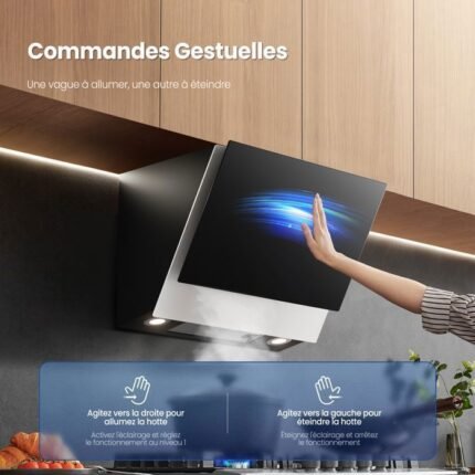 Campana extractora angular FIREGAS de 60 cm, 700 m³/h, Clase A+++, 9 velocidades, motor BLDC, extracción y recirculación, control táctil y por gestos, color negro
