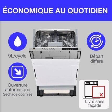 Lavavajillas integrable Continental Edison CELV1045FI – 10 cubiertos – Ancho 44,8 cm – Clase energética D – 45 dB – Blanco