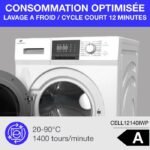 | Nombre del producto | Lavadora de carga frontal – CONTINENTAL EDISON – CELL12140IWP – 12 kg – Inducción – 60 cm – 1400 rpm – Blanca |