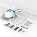 Viene con 1 cabezal giratorio de 180°; 2 extensiones de suelo; 2 almohadillas de microfibra para el cabezal rectangular; 2 boquillas de tela; 2 fundas; 1 boquilla de alta presión; 1 boquilla en forma de L; 1 escobilla de goma; 2 cepillos redondos; 1 cepillo para barbacoa; 1 boquilla para quitar papel pintado