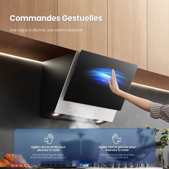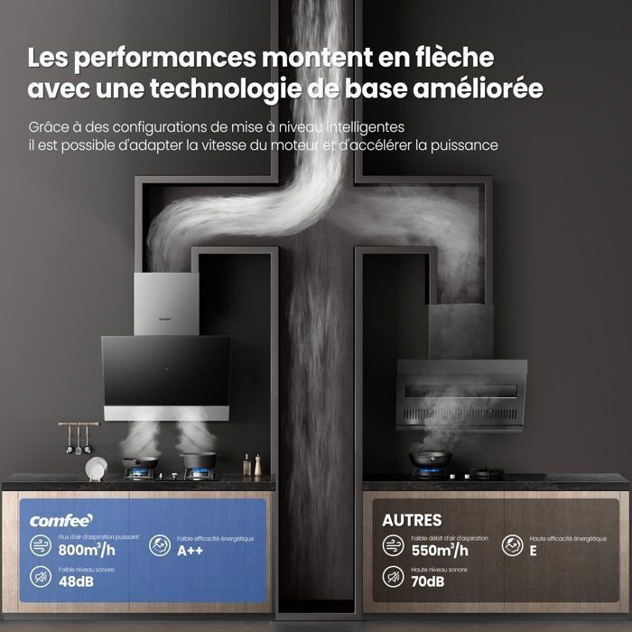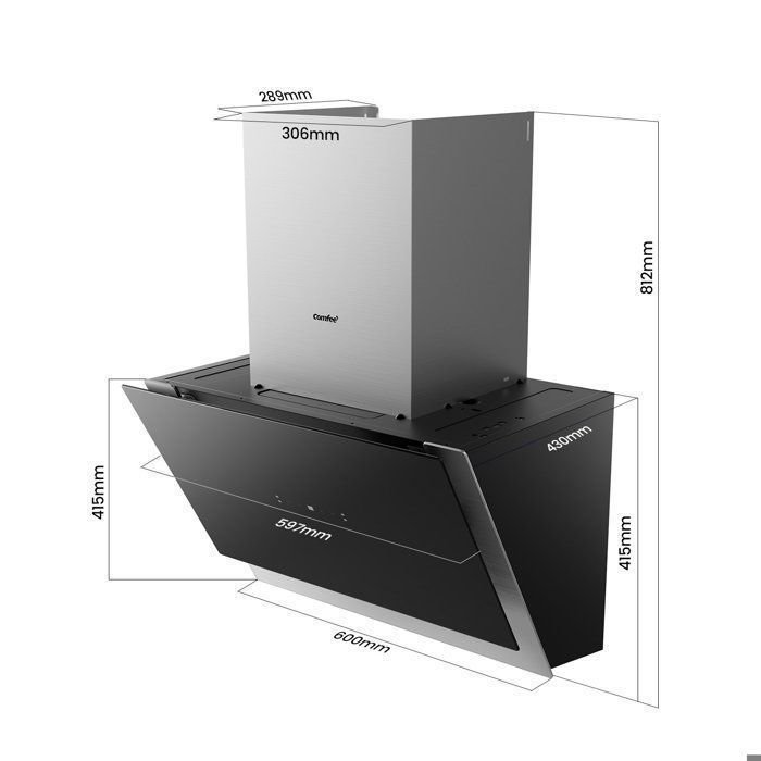 | Nombre del producto | Campana extractora angular Comfee de 60 cm – 800 m³/h – Clase energética A++ – Controles gestuales – 4 velocidades – 2 filtros de carbón – Cristal negro |