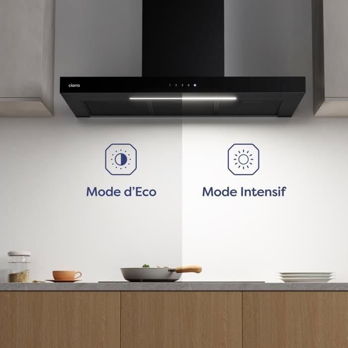 | Nombre del producto | Campana extractora CIARRA 90 cm con conexión Wi-Fi y botón táctil A+++ 650 m³/h Booster 59 dB Negro |