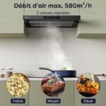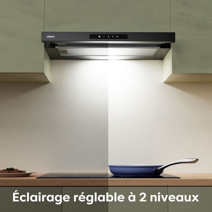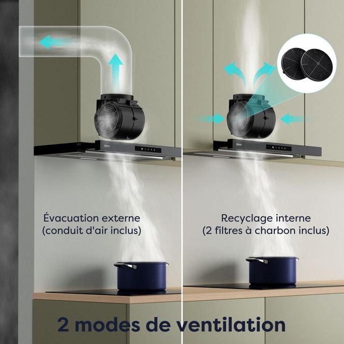 Campana extractora CIARRA de 60 cm A+ 580 m³/h Modo recirculación o extracción Incluye 2 filtros activos Campana negra CD6909AB
