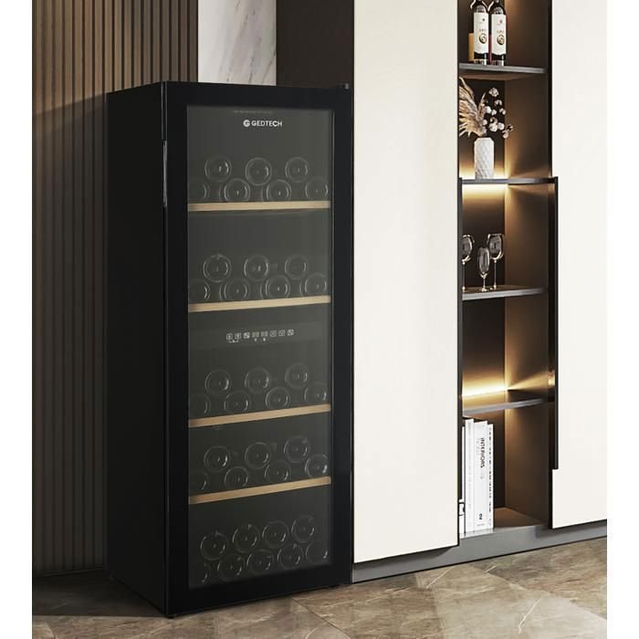 Inicio Frío Vinoteca Cava de vinos GEDTECH GWC86 – Independiente – 86 botellas – Doble zona – Estantes de madera – Sin escarcha – Negra