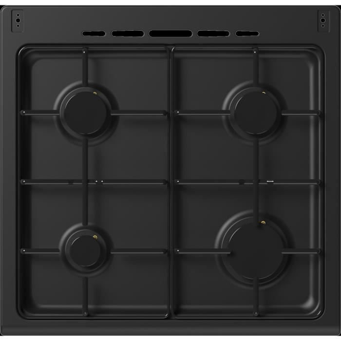 | Tipo de producto | Cocina de gas Continental Edison CECG60FCB1 – 4 quemadores – 59,8 cm de ancho x 61 cm de profundidad x 83 cm de alto – Color negro |