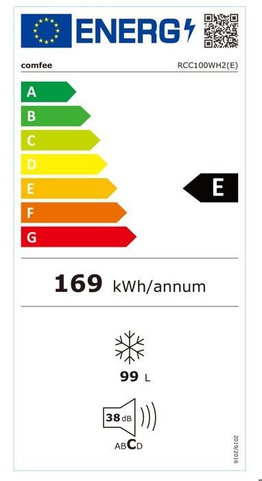Nombre del producto Congelador horizontal Comfee RCC100WH2(E) – 99 L – Clase energética E – Control digital – 38 dB – 49,5 x 54,5 x 85 cm – Controles electrónicos – Blanco