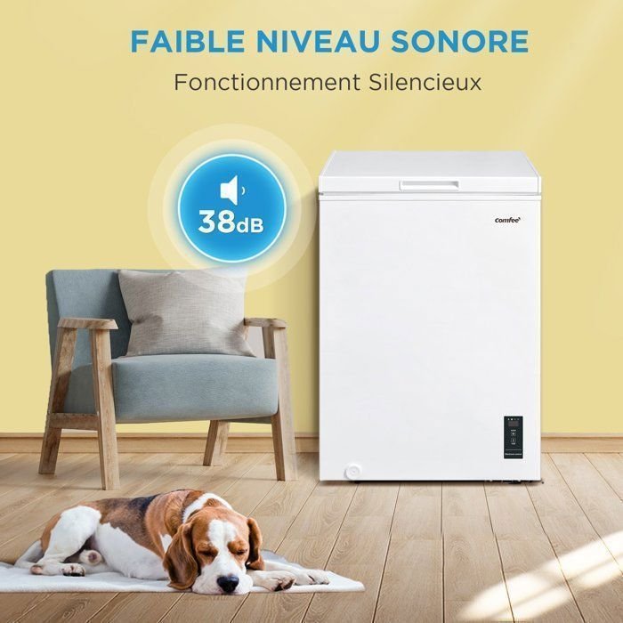 Congelador horizontal Comfee RCC100WH2(E) – 99 L – Clase energética E – Control digital – 38 dB – 49,5 x 54,5 x 85 cm – Controles electrónicos – Blanco