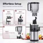 Exprimidor AMZCHEF, tolva de alimentación de 150 mm de ancho, exprimidor de frutas y verduras, 99 % de rendimiento de jugo, 2 l