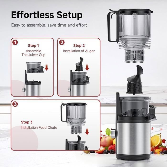Sé el primero en valorar “Exprimidor AMZCHEF, tolva de alimentación de 150 mm de ancho, exprimidor de frutas y verduras, 99 % de rendimiento de jugo, 2 l” Cancelar la respuesta