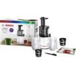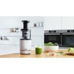 Descripción del Producto Exprimidor – BOSCH – MESM500W VitaExtract – Blanco/Cromo – 150 W – 1 Velocidad + Marcha atrás – Sistema de seguridad en la tapa
