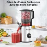 | Función y parámetros | Tubo de alimentación extra ancho de 135 mm; funcionamiento a 60 rpm para preservar los nutrientes y la frescura de la fruta, 99 % de eficiencia de extracción; Apagado automático si se abre la tapa; Incluye un vaso para jugo de 1,2 L y un recipiente para pulpa de 1 L |