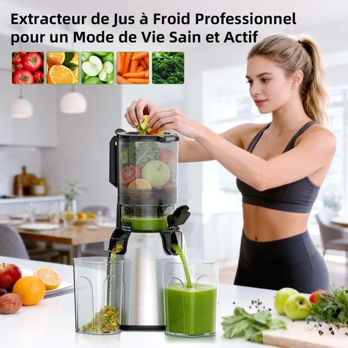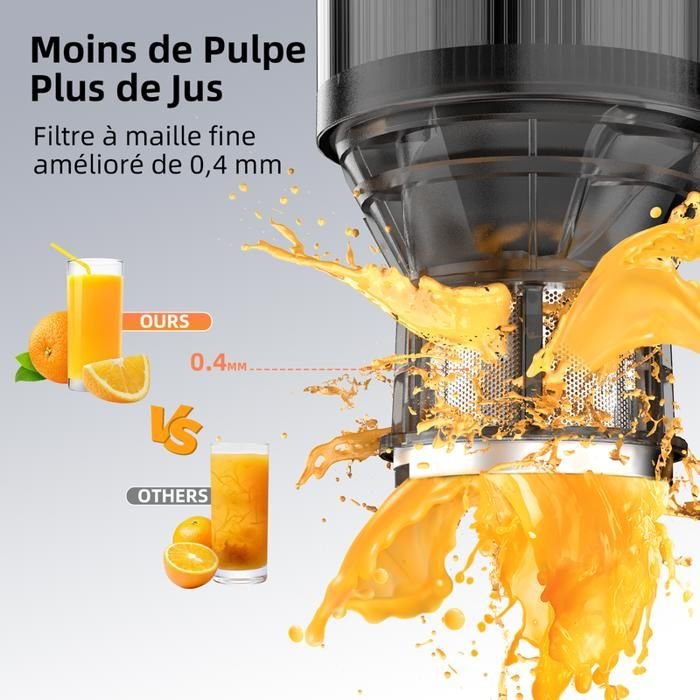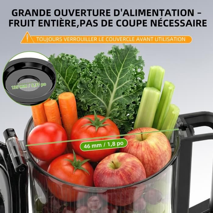| Tipo de producto | Extractor de jugos, exprimidor de frutas y verduras enteras con tolva de alimentación grande de 135 mm, exprimidor lento, alto rendimiento |
