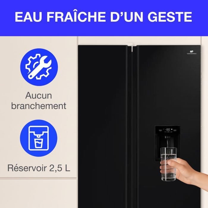 Inicio Frío Refrigerador Frigorífico americano – CONTINENTAL EDISON – CERA505NFBD – 503 L – Total No Frost – Clase energética D – An. 92 x Al. 177 cm – Negro