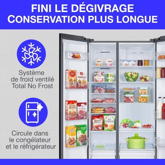 Frigorífico americano – CONTINENTAL EDISON – CERA505NFBD – 503 L – Total No Frost – Clase energética D – An. 92 x Al. 177 cm – Negro