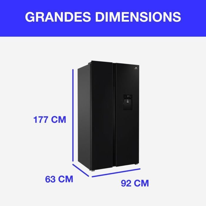 Nombre del producto Frigorífico americano – CONTINENTAL EDISON – CERA505NFBD – 503 L – Total No Frost – Clase energética D – An. 92 x Al. 177 cm – Negro