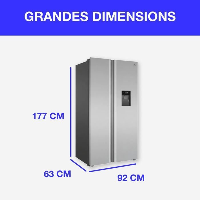 | Nombre del producto | Frigorífico americano – CONTINENTAL EDISON – CERA505NFIXD – 503 L – Total No Frost – Clase energética D – An. 92 x Al. 177 cm – Acero inoxidable |