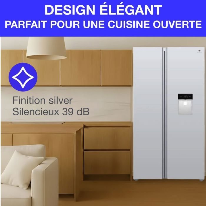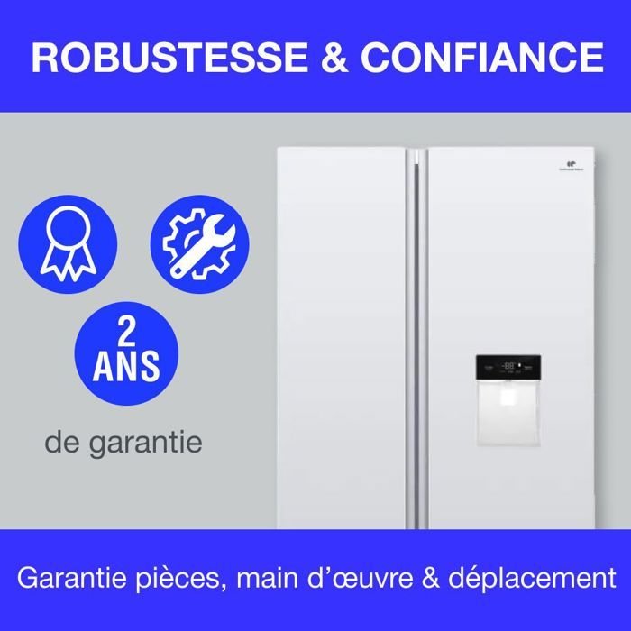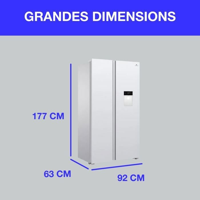 Inicio Frío Refrigerador Frigorífico americano – CONTINENTAL EDISON – CERA505NFWD – 503 L – Total No Frost – Clase energética D – An. 92 x Al. 177 cm – Blanco