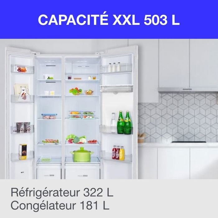 Frigorífico americano – CONTINENTAL EDISON – CERA505NFWD – 503 L – Total No Frost – Clase energética D – An. 92 x Al. 177 cm – Blanco