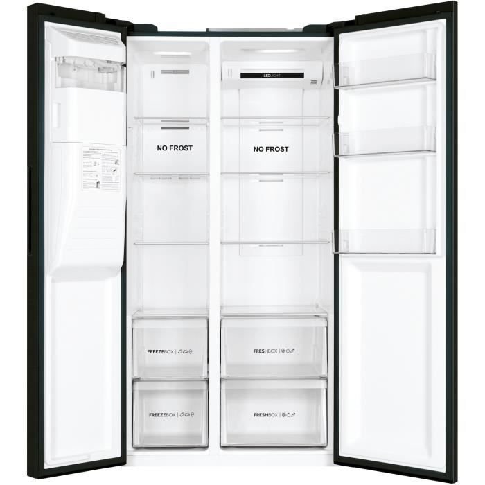 Frigorífico americano – HAIER – SBS 90 Serie 3 HSR3918EIPB – Clase energética E – 515 L – 180 x 90 x 65,9 cm – Negro