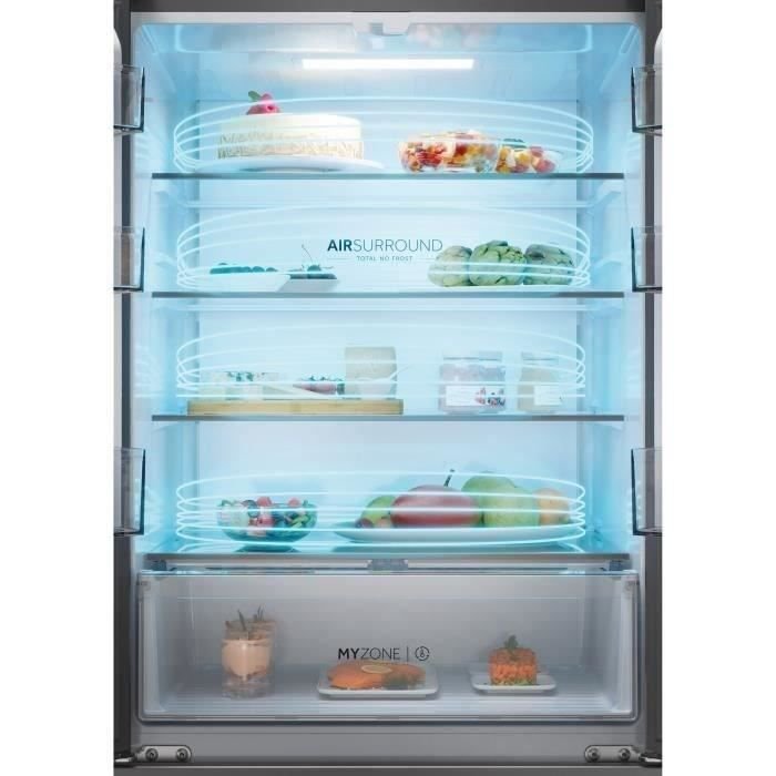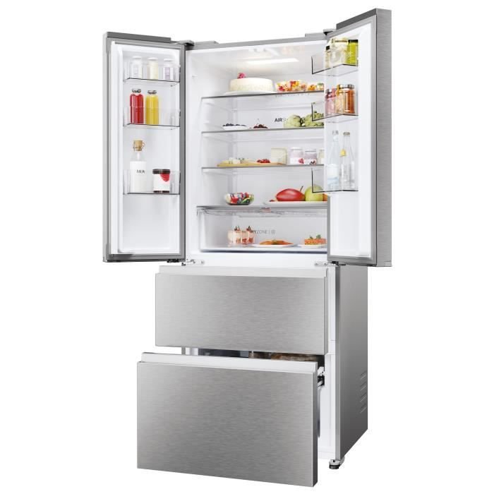 | Nombre del producto | Frigorífico multipuerta – HAIER – HFR3718ENMM – Clase energética E – 402 L (262 + 140) – 37 dB – Gris |