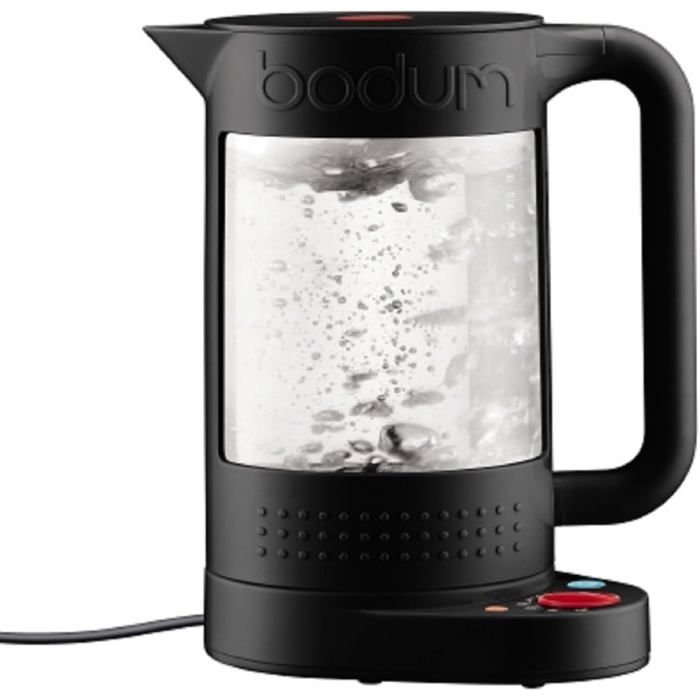 Descripción del Producto 5 ajustes de temperatura (60 °C, 70 °C, 80 °C, 90 °C, 100 °C). Innovadora construcción de doble pared (pared interior de vidrio de borosilicato, pared exterior de plástico irrompible). Función de mantenimiento del calor. Hervidor eléctrico Bistro de doble pared con control de temperatura.