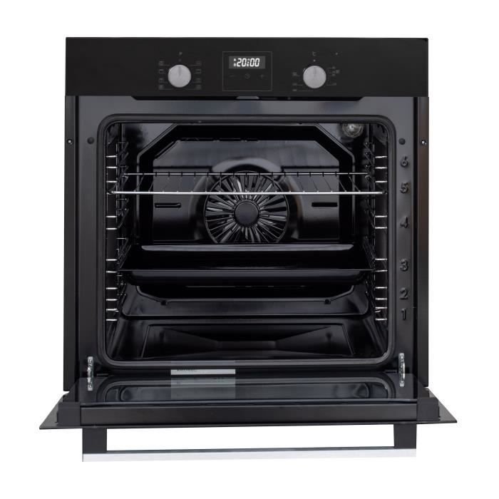 Nombre del producto Horno catalítico de empotrar – con ventilador – CONTINENTAL EDISON – F80CBIX – Negro y acero inoxidable – An 59,5 x Al 59,6 x Pr 54,68 cm