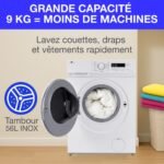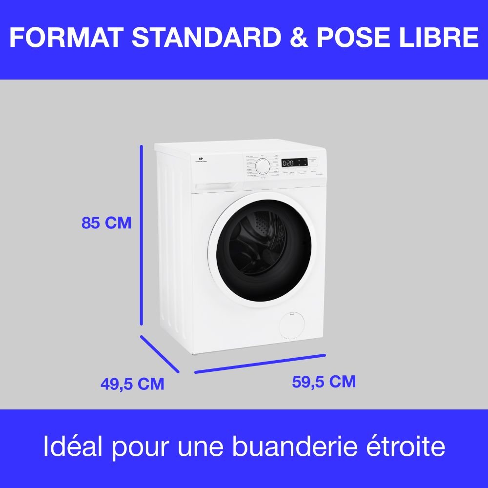 | Tipo de producto | Lavadora de carga frontal CONTINENTAL EDISON CELL914IWS – 9 kg – Ancho 59,5 cm – Clase energética A – 1400 rpm – Motor de inducción – Blanco |