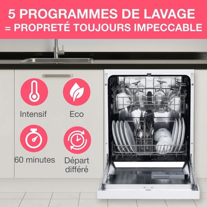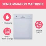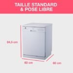Lavavajillas de libre instalación Continental Edison – 15 cubiertos – 59,8 cm de ancho – Clase energética D – Motor de inducción – 39 dB – Plata
