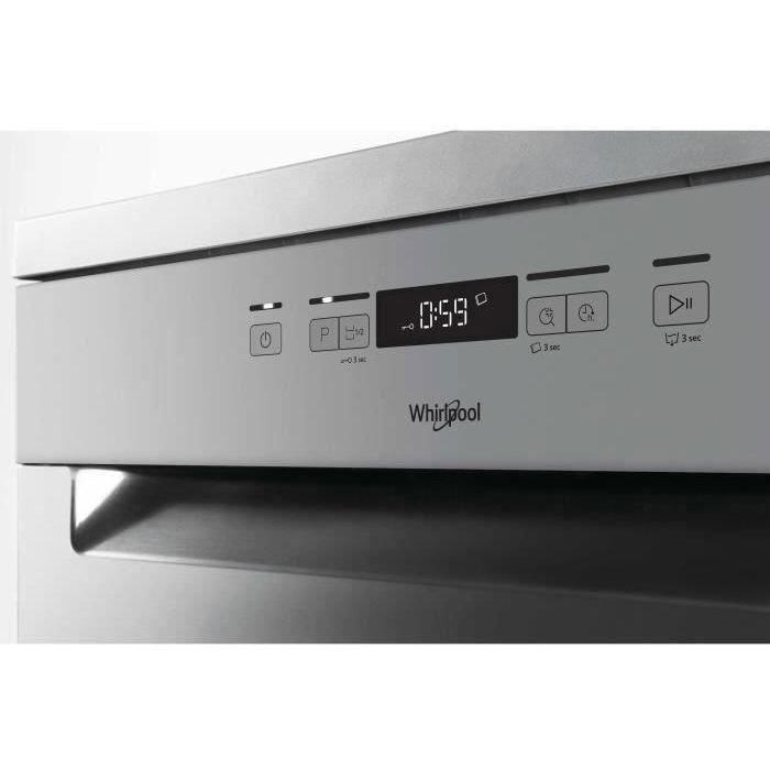 | Tipo de producto | Lavavajillas de libre instalación WHIRLPOOL OWFC3C26X – 14 cubiertos – Inducción – 60 cm de ancho – 46 dB – Acero inoxidable/plata |