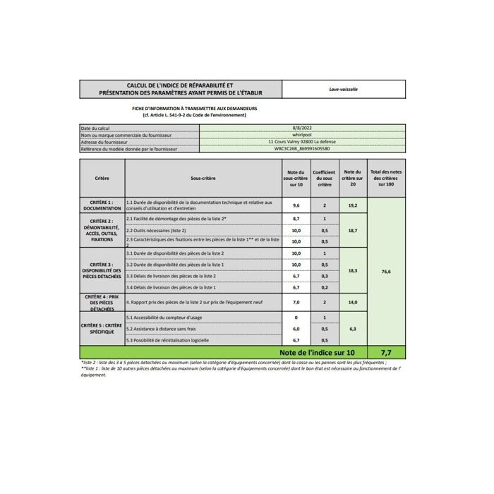 | Índice de reparabilidad | 7.7 |