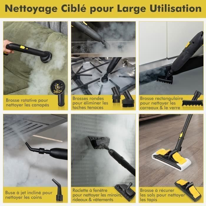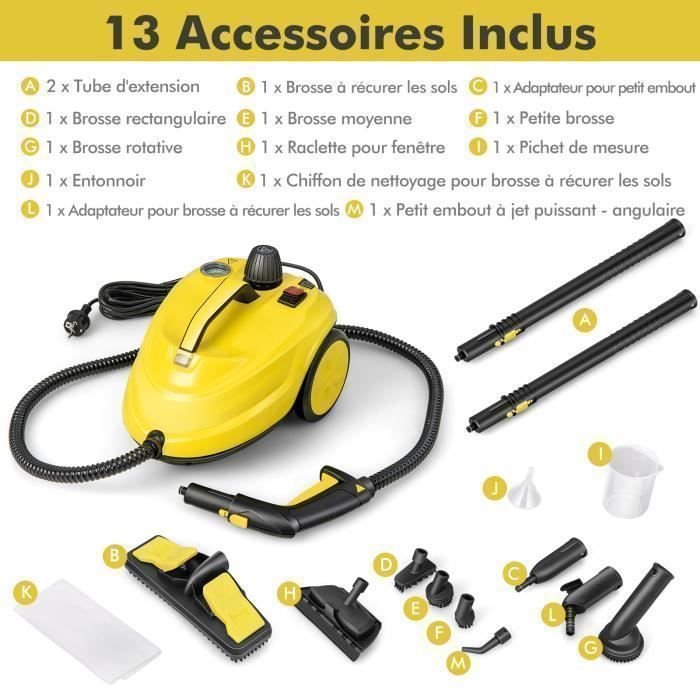 Inicio Aspiradora - Limpiador Aspiradora Limpiador a vapor multiusos COSTWAY de 2000 W para chinches – 5,0 BAR – 15 accesorios y manómetros – Depósito de 1,8 L – Rueda universal