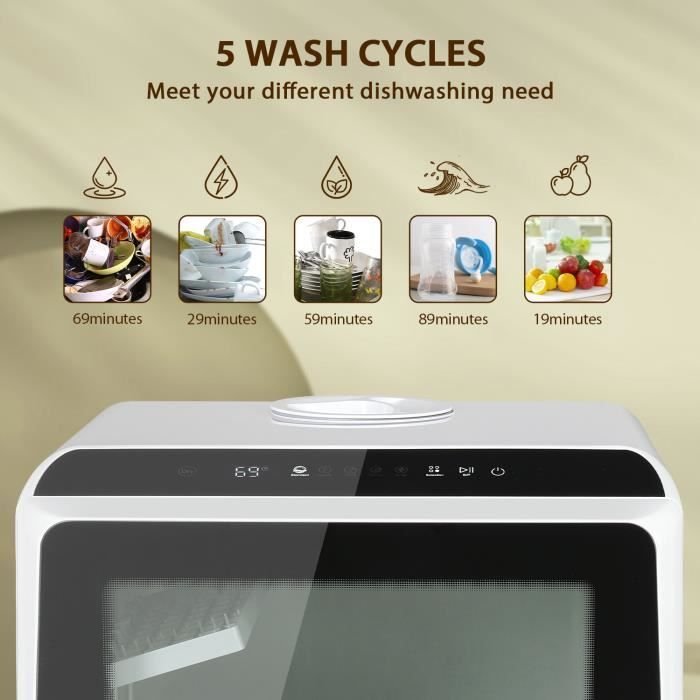 Minilavavajillas de libre instalación PULUOMIS con 4 cubiertos, 6 programas, depósito de agua de 5 l y pantalla LED, 42 cm