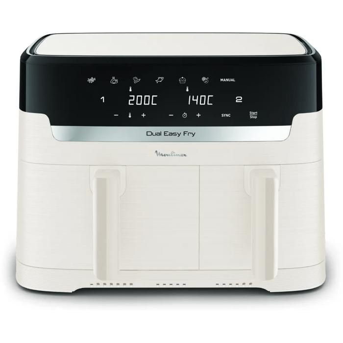 Moulinex Easy Fry Dual Flex, freidora de aire, cajón de 9 l para 8 personas, doble zona, divisor extraíble, 7 programas