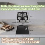 Nombre del producto Placa de gas de 2 quemadores, placa de gas de acero inoxidable de 2 quemadores, cocina de gas de 2 quemadores integrada, 4200 W, seguridad por termopar