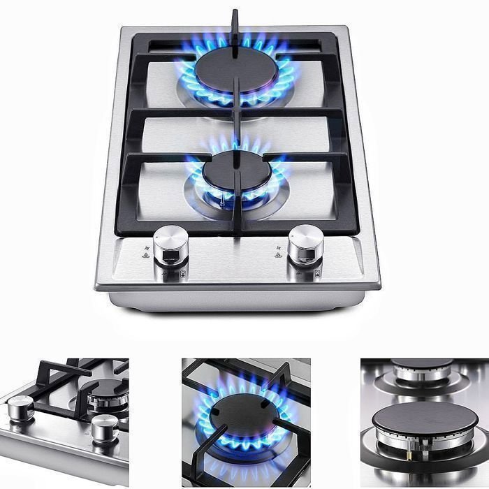 Inicio Cocinando Placa de Cocina Placa de gas de 2 quemadores, placa de gas de acero inoxidable de 2 quemadores, cocina de gas de 2 quemadores integrada, 4200 W, seguridad por termopar