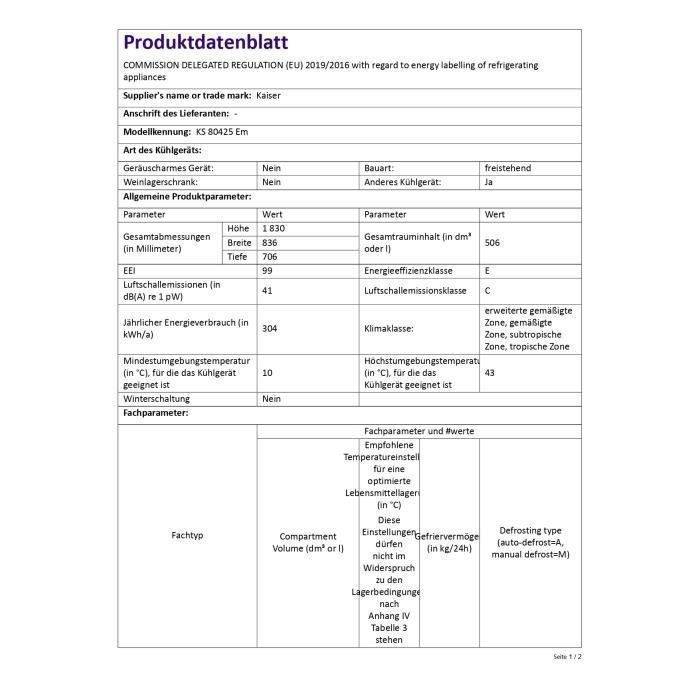 Nombre del producto Refrigerador Kaiser – KS 80425 – Retro – No Frost – 506 L – 2 Puertas