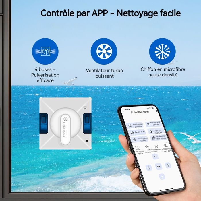 Nombre del producto Robot limpiacristales LIECTROUX YW509 – 4 boquillas / 3 direcciones de pulverización – Depósito de 100 ml – 3000 Pa – Control por app – Triple seguridad