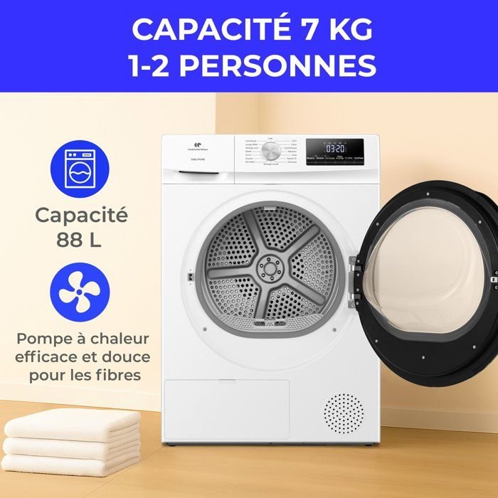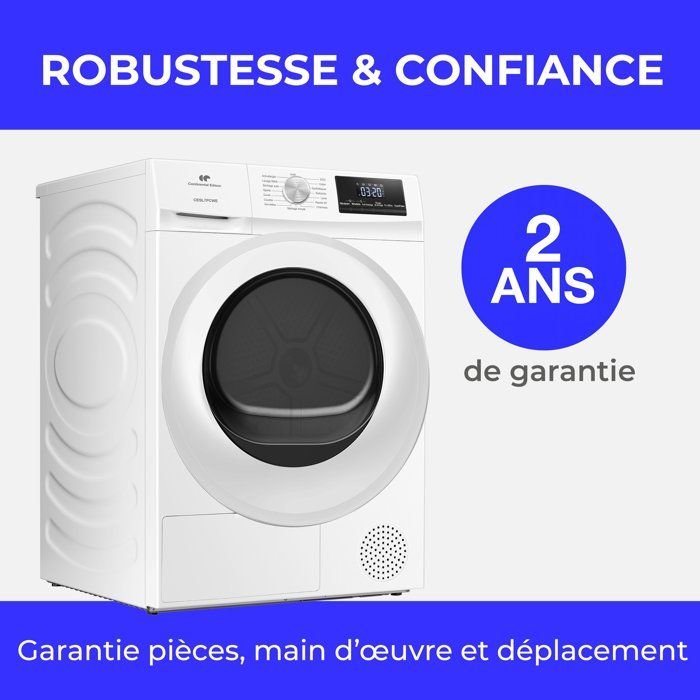 | Nombre del producto | Secadora con bomba de calor – CONTINENTAL EDISON – CESL7PCWE – 7 kg – 60 cm – Clase energética E – Blanco |