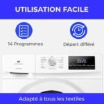 | Características | Antialérgico. Programa para bebés. Secado automático. Ropa deportiva. Plumíferos. Sábanas. Toallas. Ecológico. Algodón. Sintéticos. Refrescante. Lana. Rápido 30 min. Camisas. |