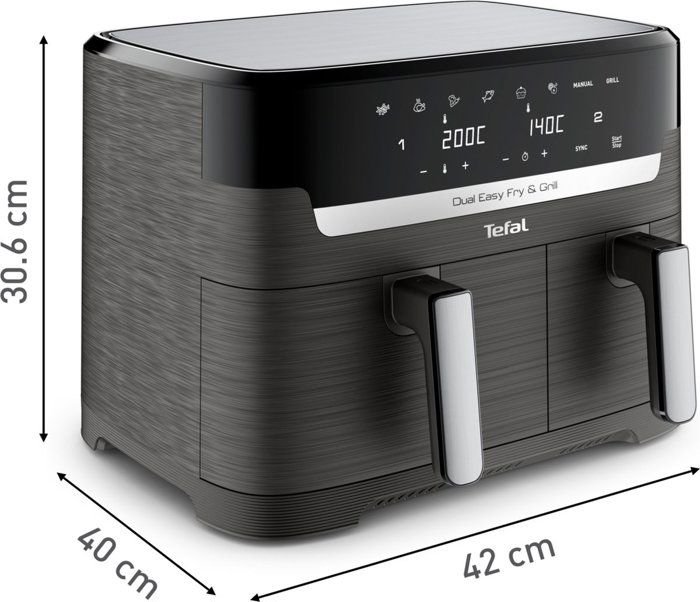 Inicio Kits de Cocina Freidora Tefal Dual Easy Fry & Grill Gris, EY905B10, Freidora de aire y grill, 2 cajones