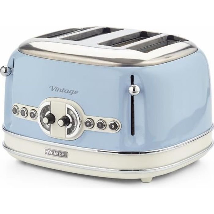 Tostadora vintage de 4 rebanadas – ARIETE – Termostato de 6 posiciones – Funciones descongelar, recalentar y tostar