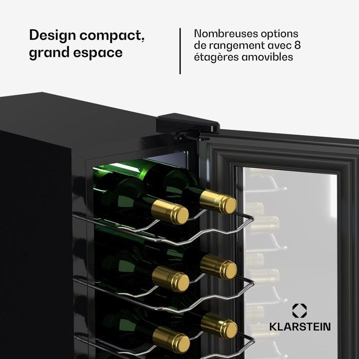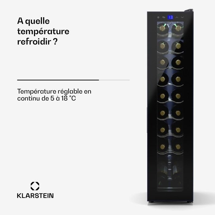 Inicio Frío Vinoteca Vinoteca Klarstein, 50 l, puerta de cristal, 1 zona, nevera para vinos, armario para 18 botellas, color negro