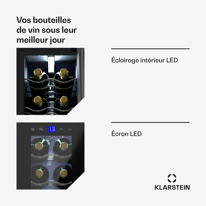 Vinoteca Klarstein Barossa 29 Duo – 29 botellas – 80 L – 2 zonas – 5 a 22 °C – LED – Negra